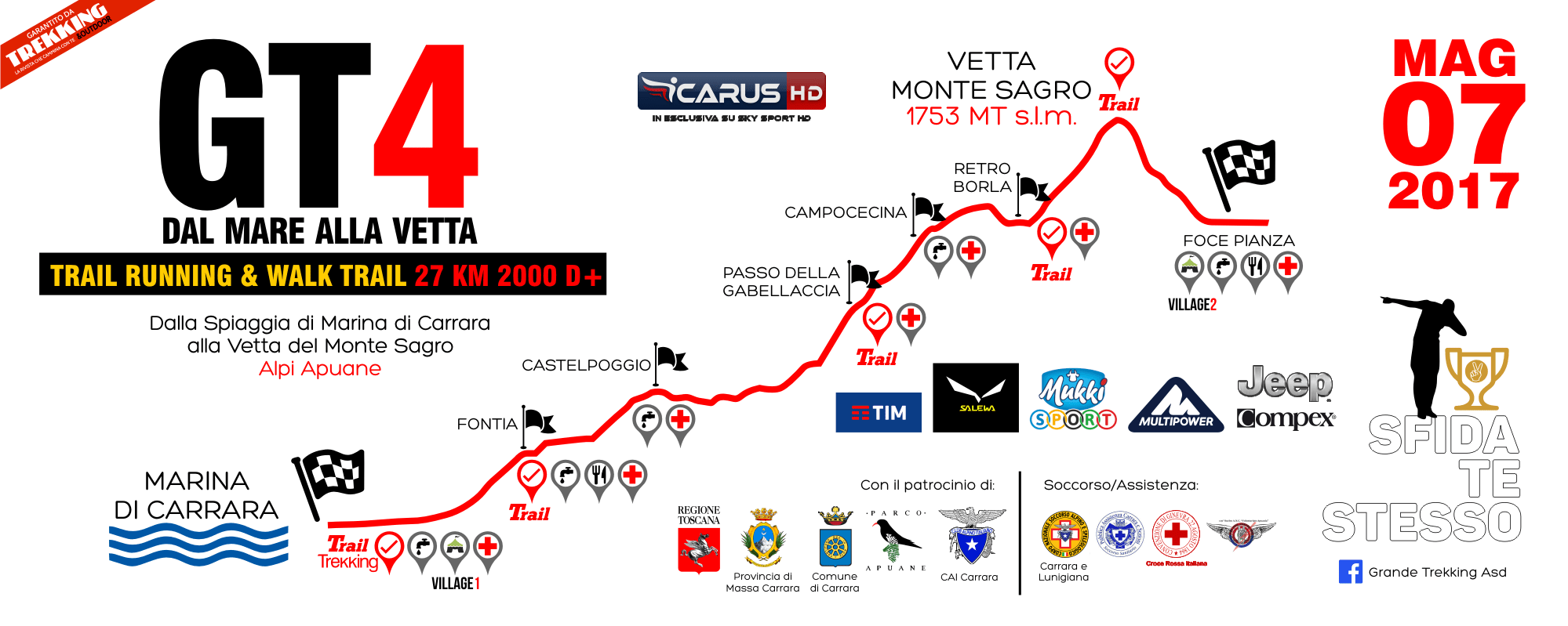 L’Associazione Grande Trekking A.S.D. ha il piacere di invitarVi alla conferenza stampa di presentazione della IV edizione del Grande Trekking dal Mare alla Vetta – Trail Running & Walk Trail 27 KM 2000 D+ con partenza dalla spiaggia di Marina di Carrara fino alla vetta del Monte Sagro, Alpi Apuane.