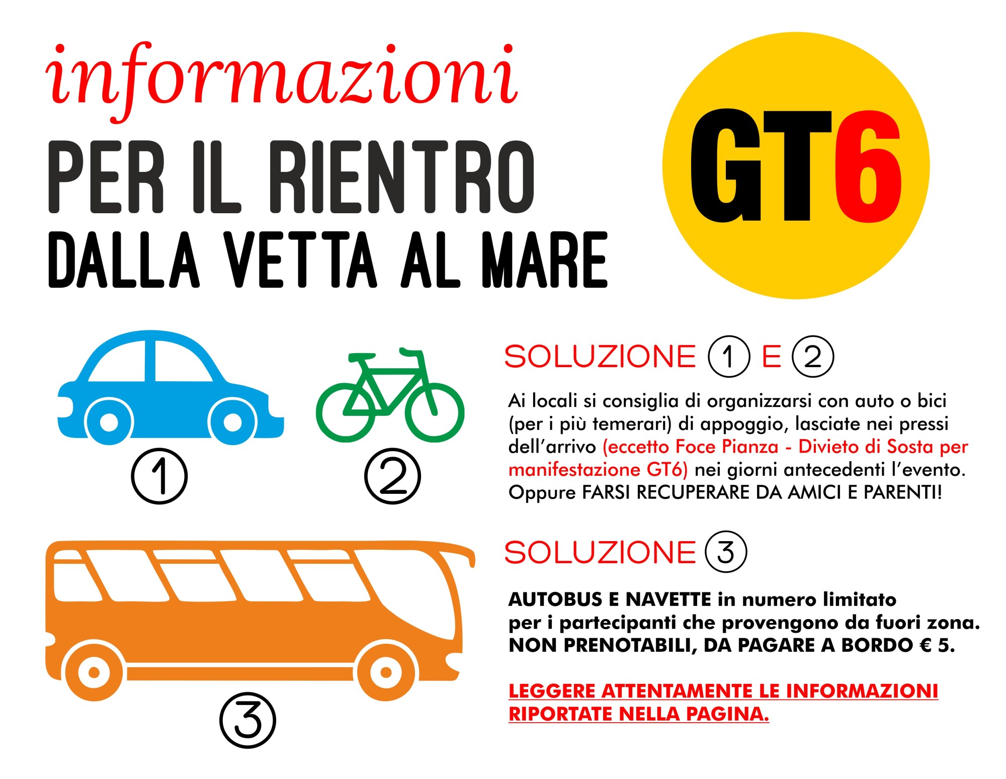 Non sarà possibile, vista la zona disagiata da percorrere e la sua particolare viabilità, assicurare orari certi di partenze e arrivi, nonchè tempi di attesa. Pertanto si consiglia vivamente ai residenti locali di provvedere ad organizzarsi con mezzi propri da lasciare nei pressi dell’arrivo nei giorni antecedenti l’evento (ESCLUSO FOCE PIANZA PER DIVIETO DI SOSTA FINO A CONCLUSIONE MANIFESTAZIONE), e consentire l’utilizzo del servizio ai partecipanti provenienti da altre città d’Italia.